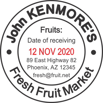 Ştampila rotundă cu extra spaţiu pentru text şi logo deasupra şi sub dată – format zi/lună/an. Banda anilor este valabilă 12 ani.